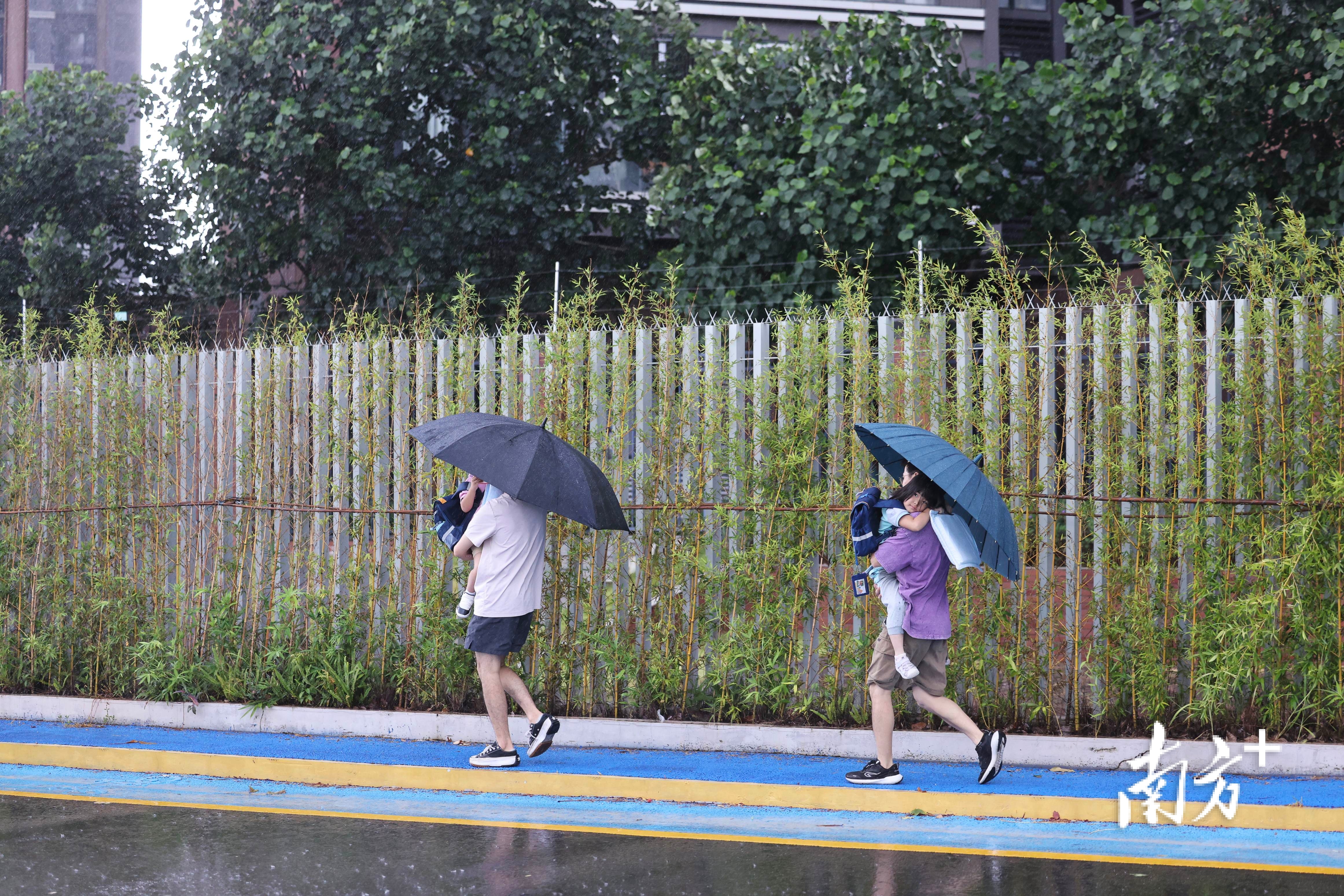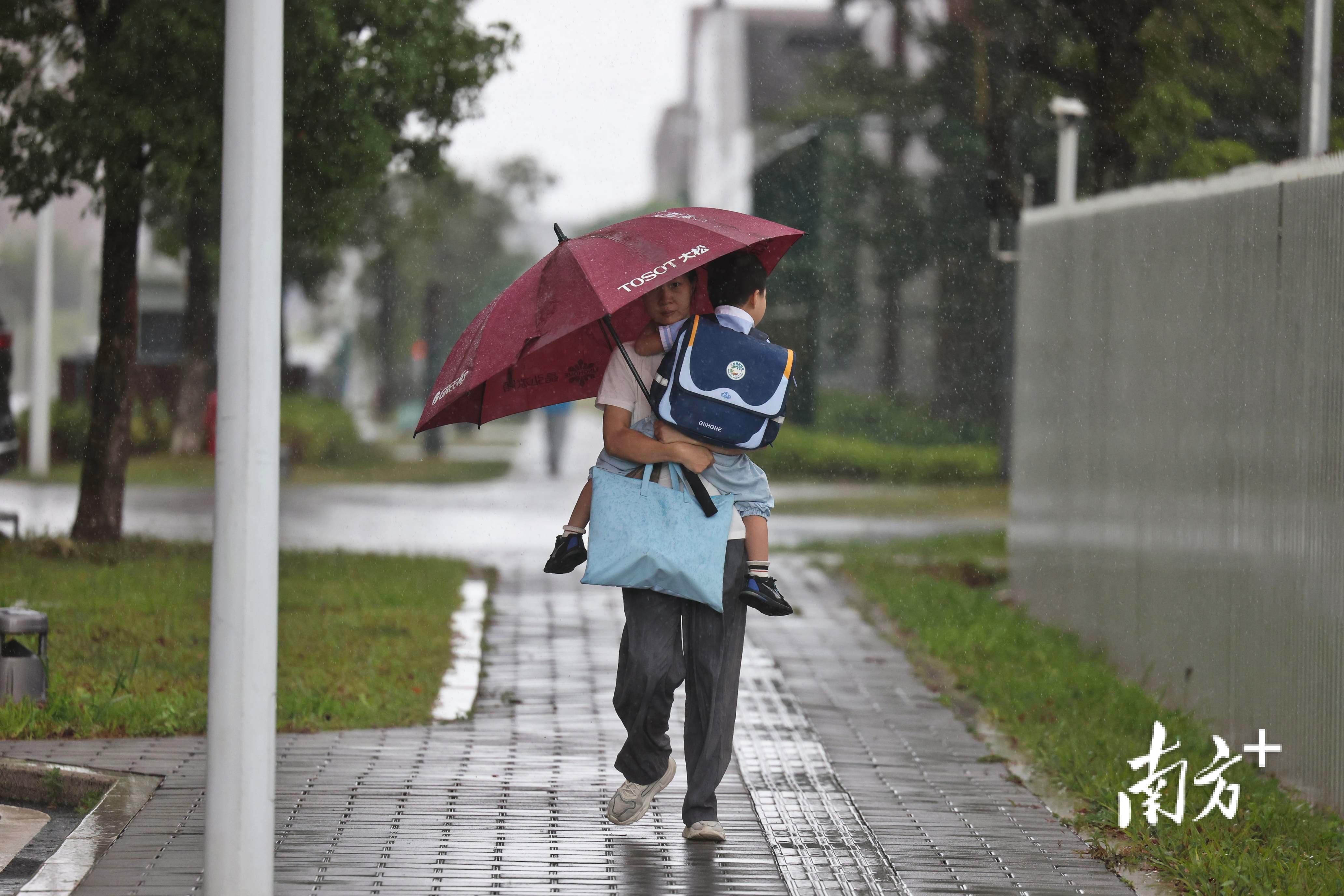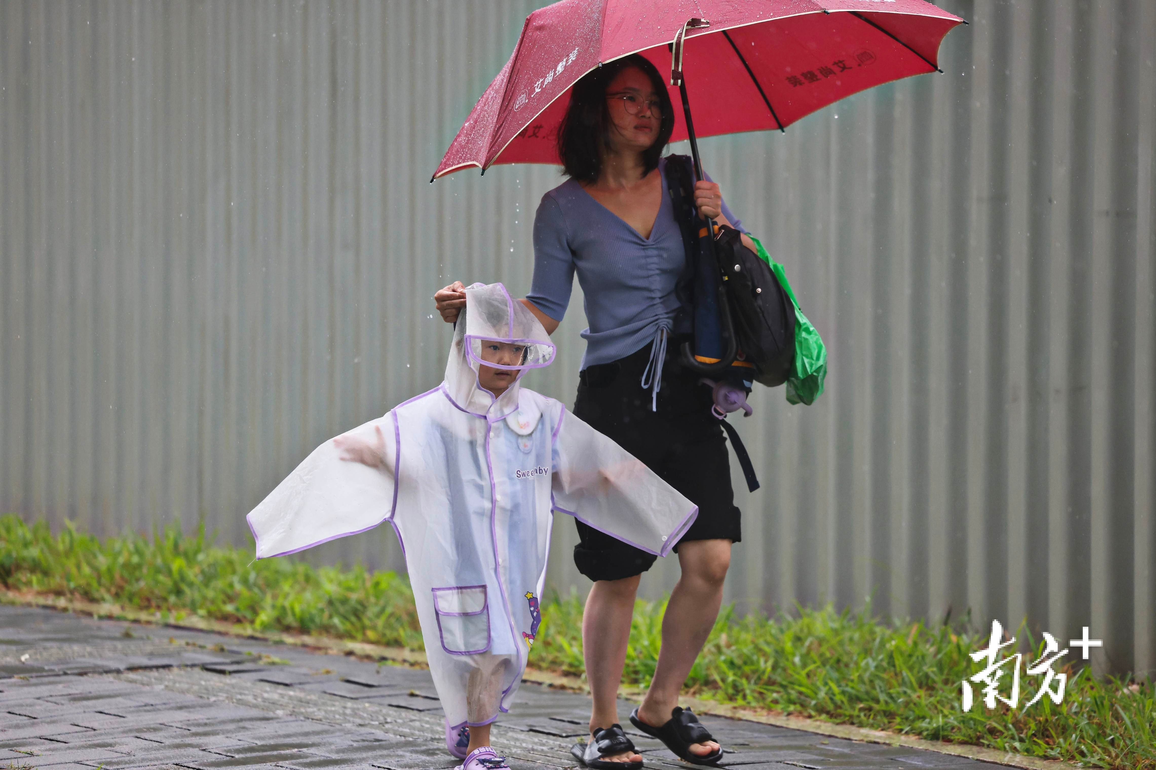 台风“塔巴”袭粤,直击广州番禺“萌娃”雨中上学现场